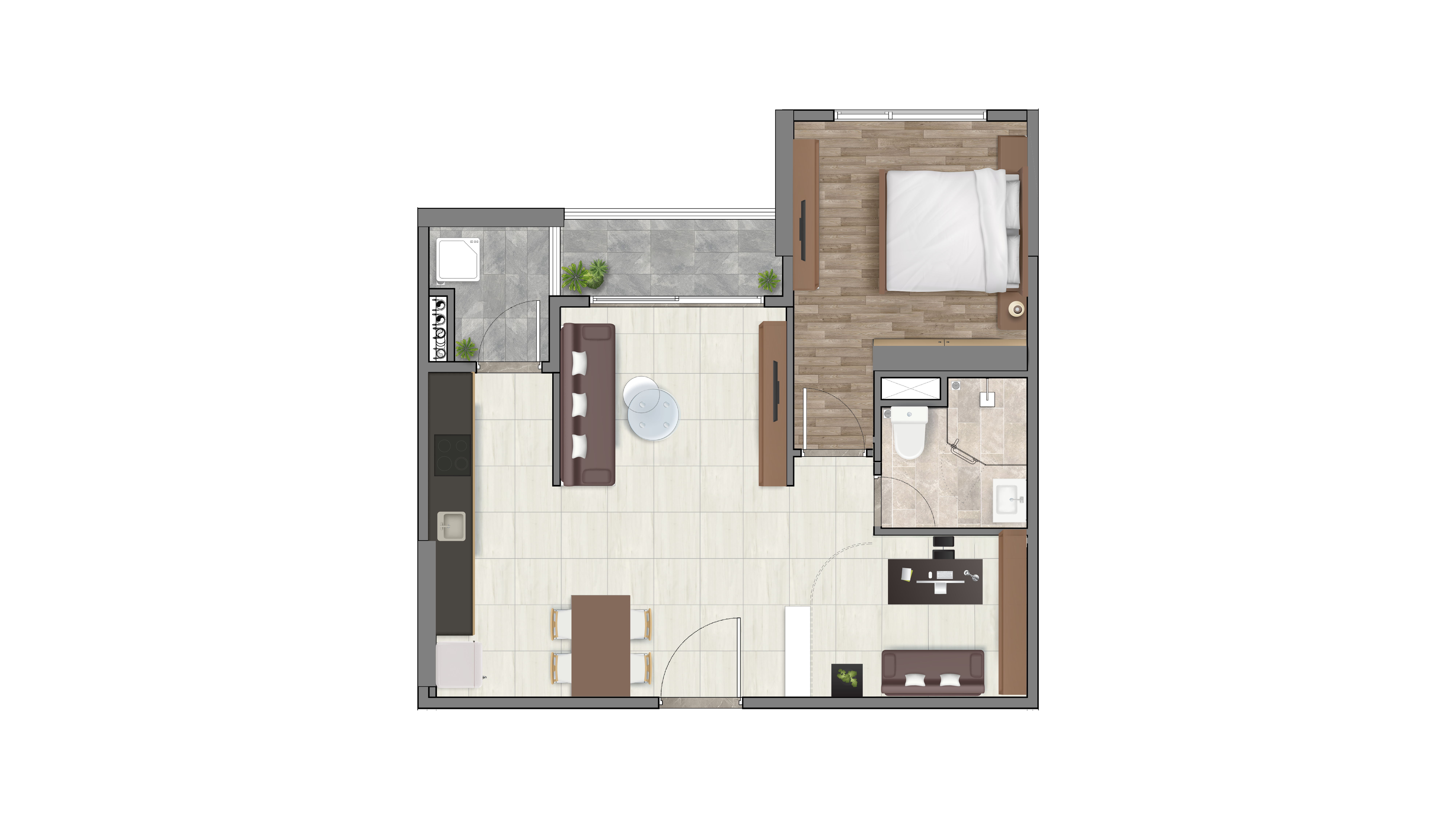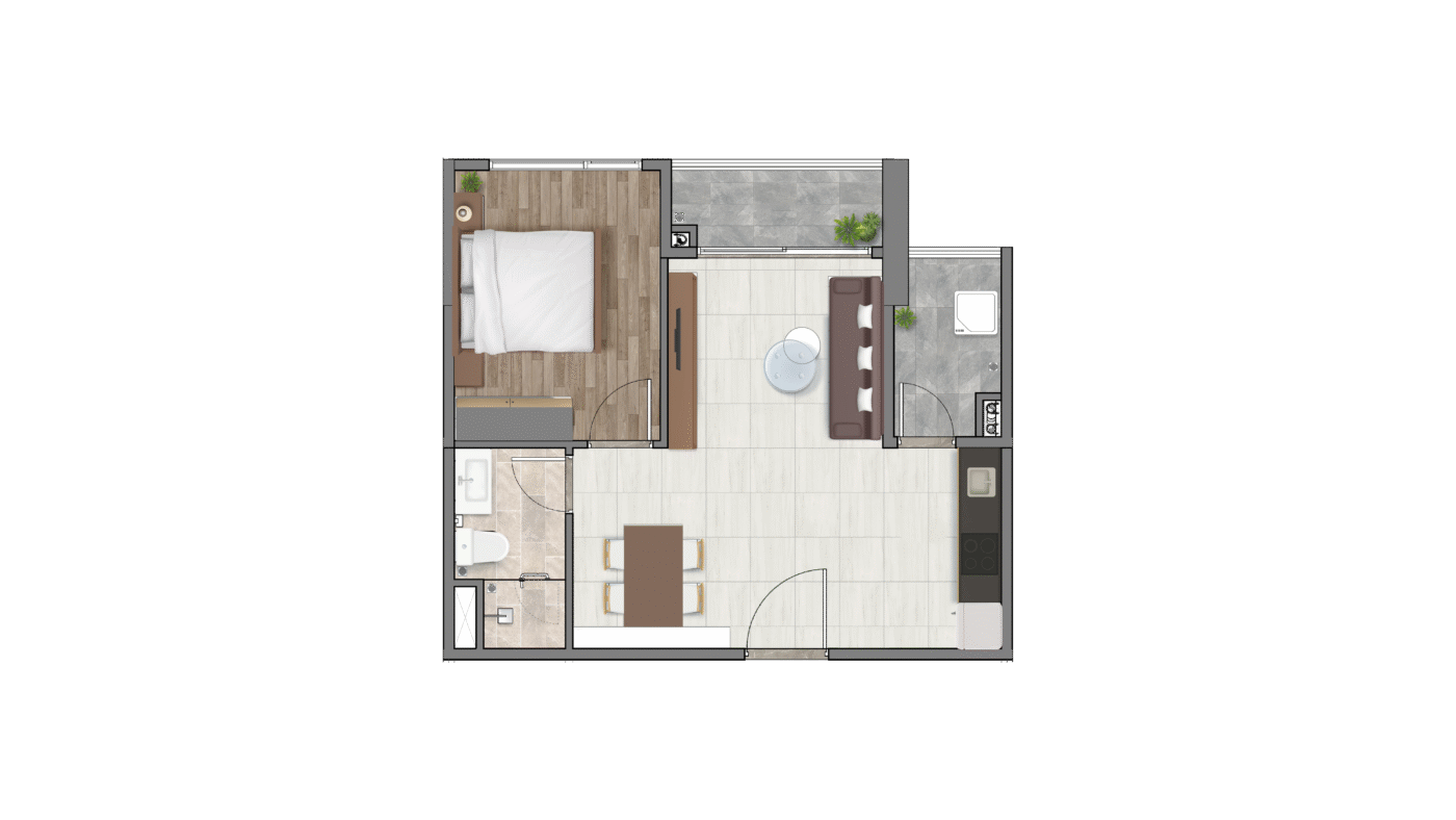 THIẾT KẾ LOẠI CĂN HỘ 1 PHÒNG NGỦ VÀ LOẠI 1 PHÒNG NGỦ + PHÒNG ĐA NĂNG