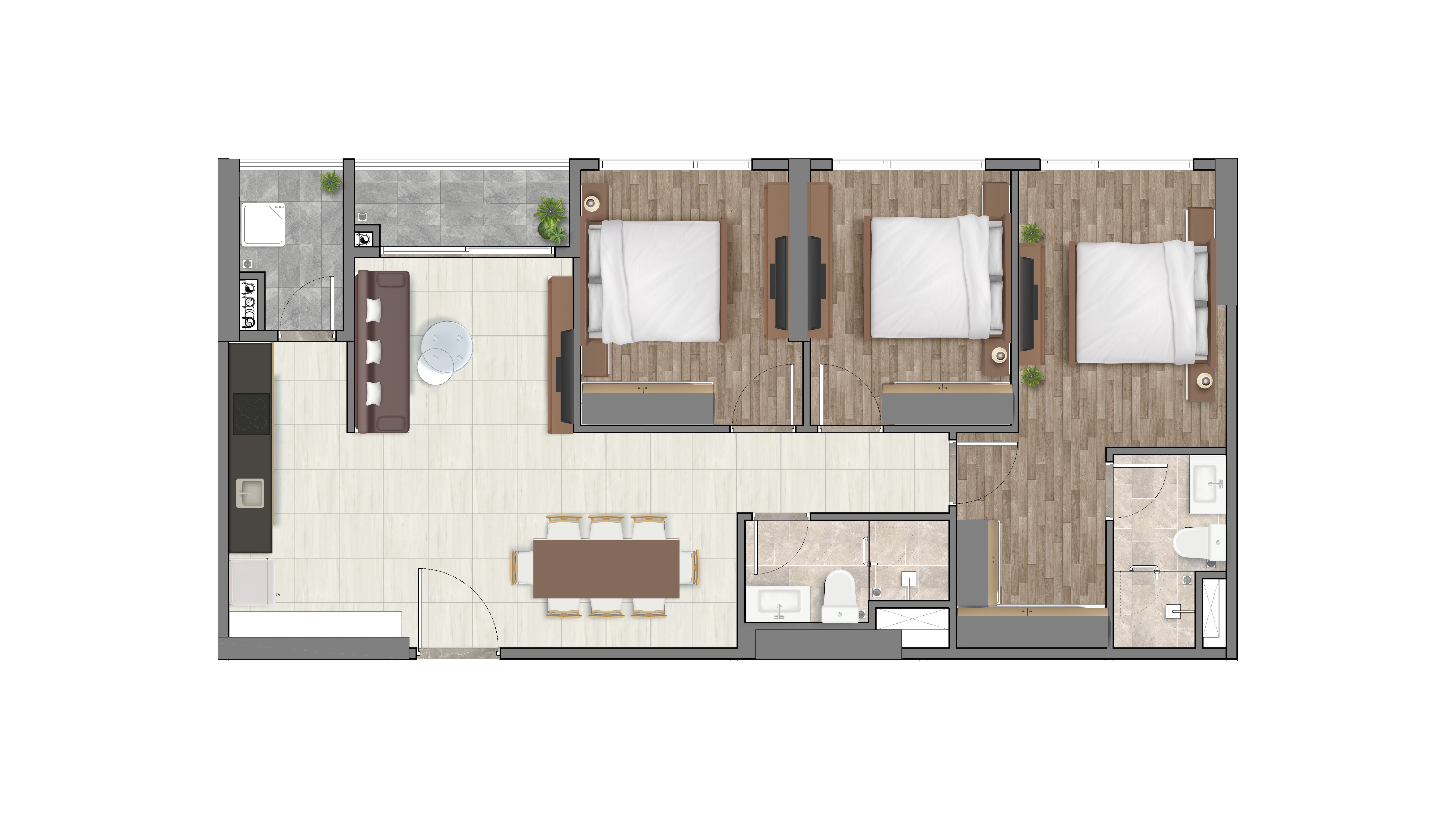 Phù hợp: gia đình 3–4 thành viên, khách mua ở lâu dài hoặc vừa ở vừa đầu tư.
