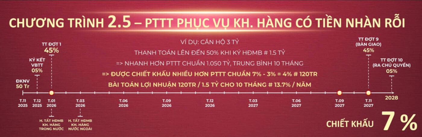 Giá bán tham khảo: từ khoảng 48 triệu/m² hoặc từ 2,2 tỷ/căn tùy diện tích & vị trí (có thể thay bằng bảng giá nội bộ của anh)