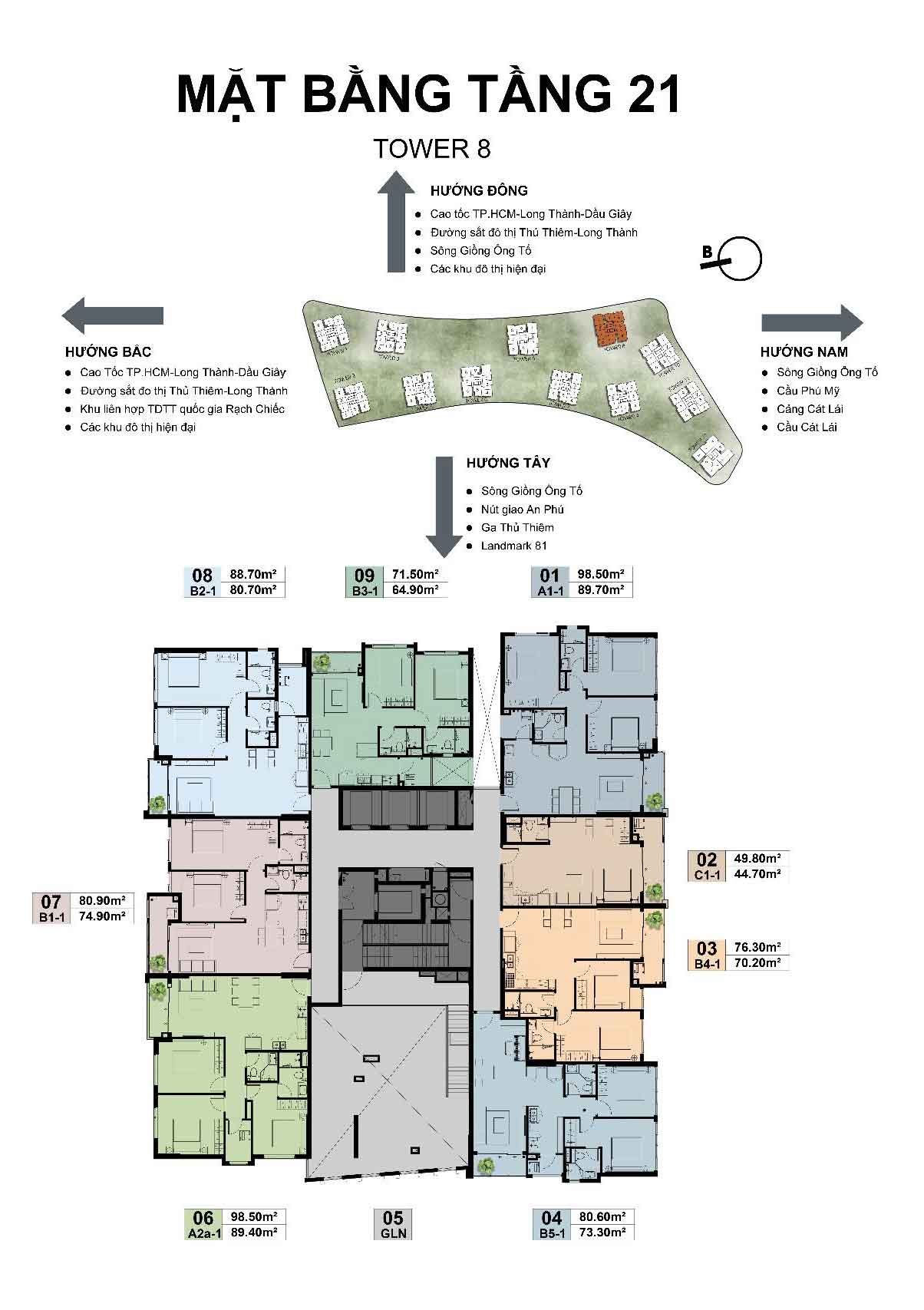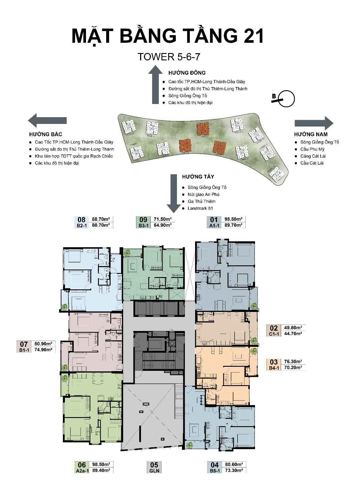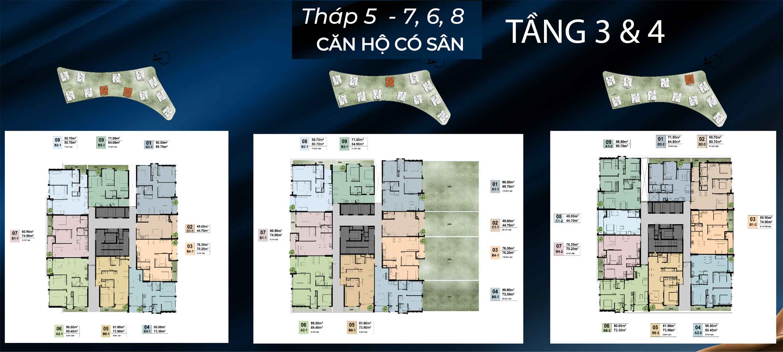 Trưng bày các loại căn hộ tiêu biểu (2 phòng ngủ, 3 phòng ngủ, duplex) để khách hàng hình dung không gian sống thực tế.