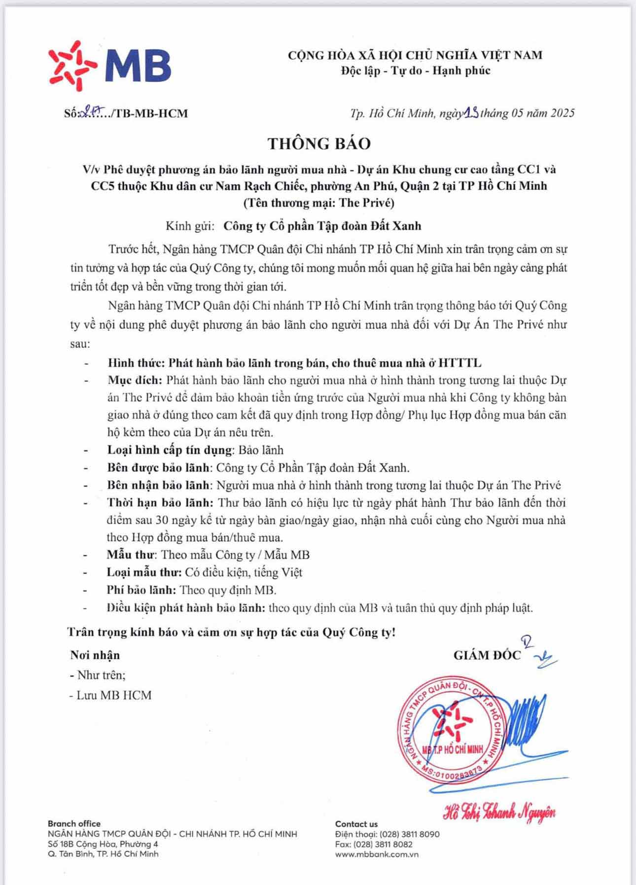 Căn hộ The Prive là dự án trọng điểm trong chiến lược tái cấu trúc danh mục đầu tư của Đất Xanh, tập trung vào phân khúc bất động sản cao cấp. Với mục tiêu doanh thu 7.000 tỷ đồng và lợi nhuận 368 tỷ đồng trong năm 2025, Đất Xanh định vị The Privé là biểu tượng mới của bất động sản TP.HCM, góp phần khẳng định vị thế tại thị trường khu Đông Sài Gòn.