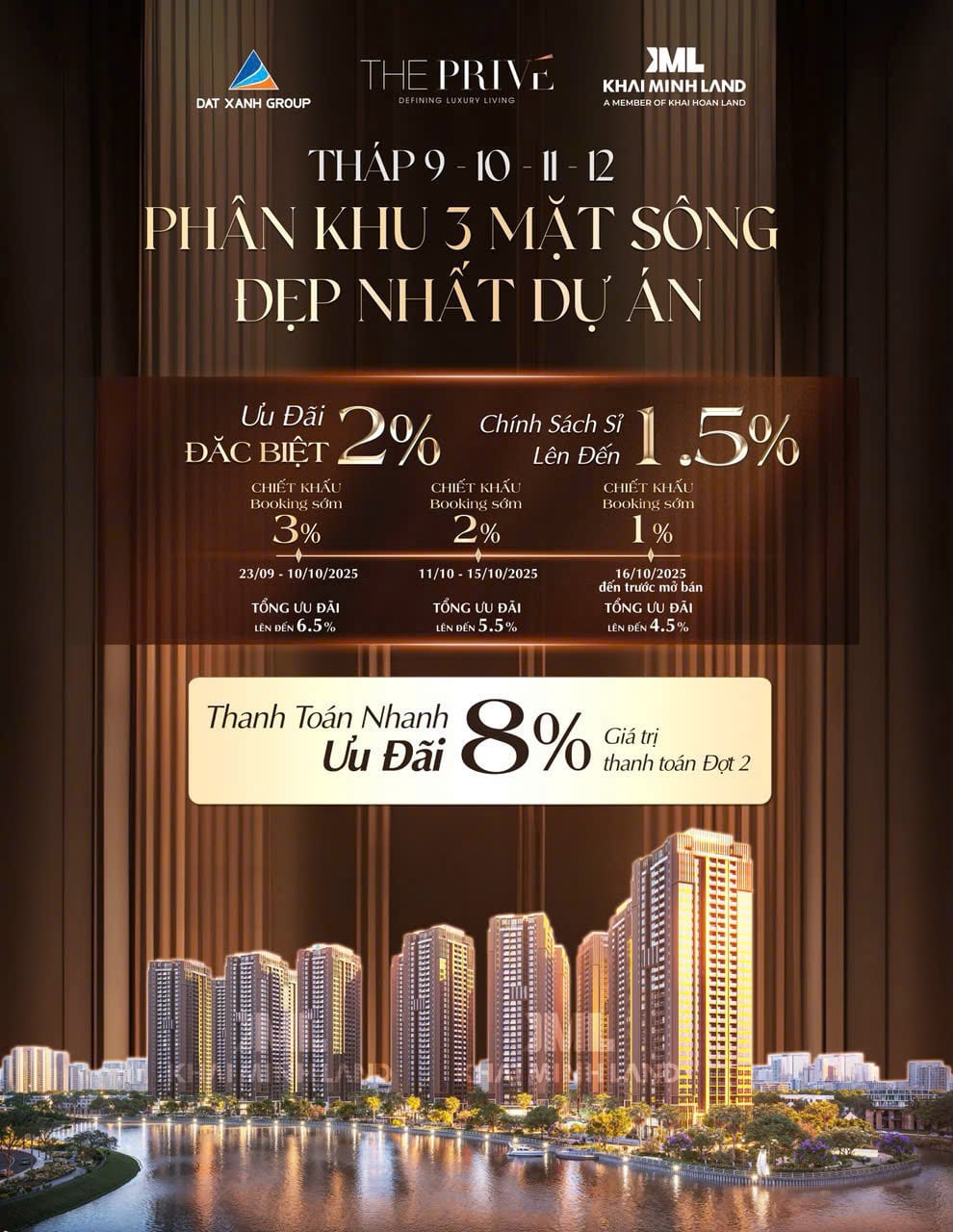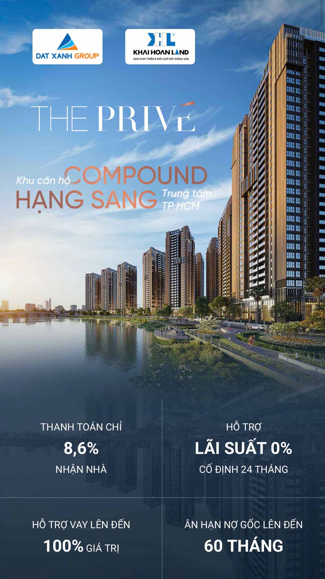 Dự án The Privé là một khu căn hộ cao cấp được phát triển bởi Tập đoàn Đất Xanh, tọa lạc tại khu đô thị Nam Rạch Chiếc, phường An Phú, TP. Thủ Đức (Quận 2 cũ), TP. Hồ Chí Minh. Được ví như “Vịnh Hạ Long giữa lòng Sài Gòn”, The Privé nổi bật với vị trí đắc địa, thiết kế sang trọng, tiện ích đẳng cấp và không gian sống xanh, hướng đến cộng đồng cư dân tinh hoa. Dưới đây là thông tin tổng