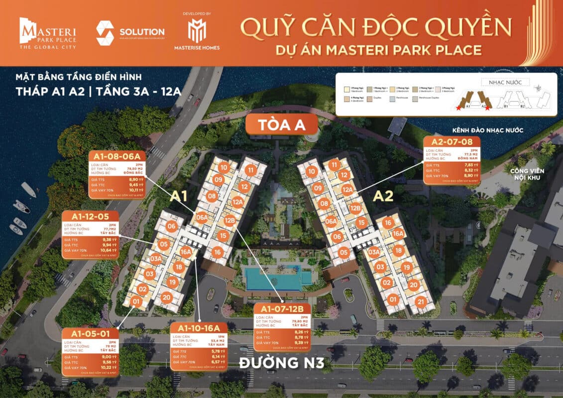 Giỏ hàng và bảng giá căn hộ Masteri Park Place tại The Global City
