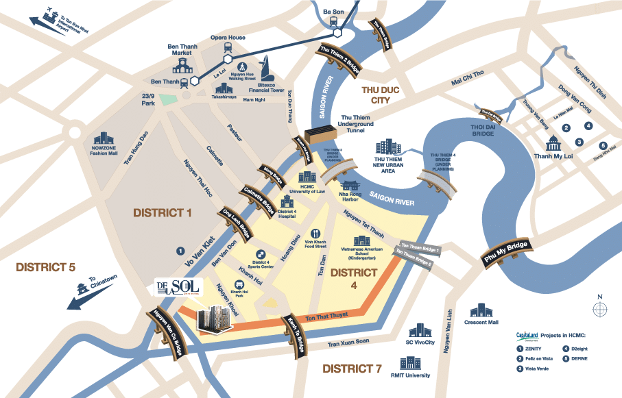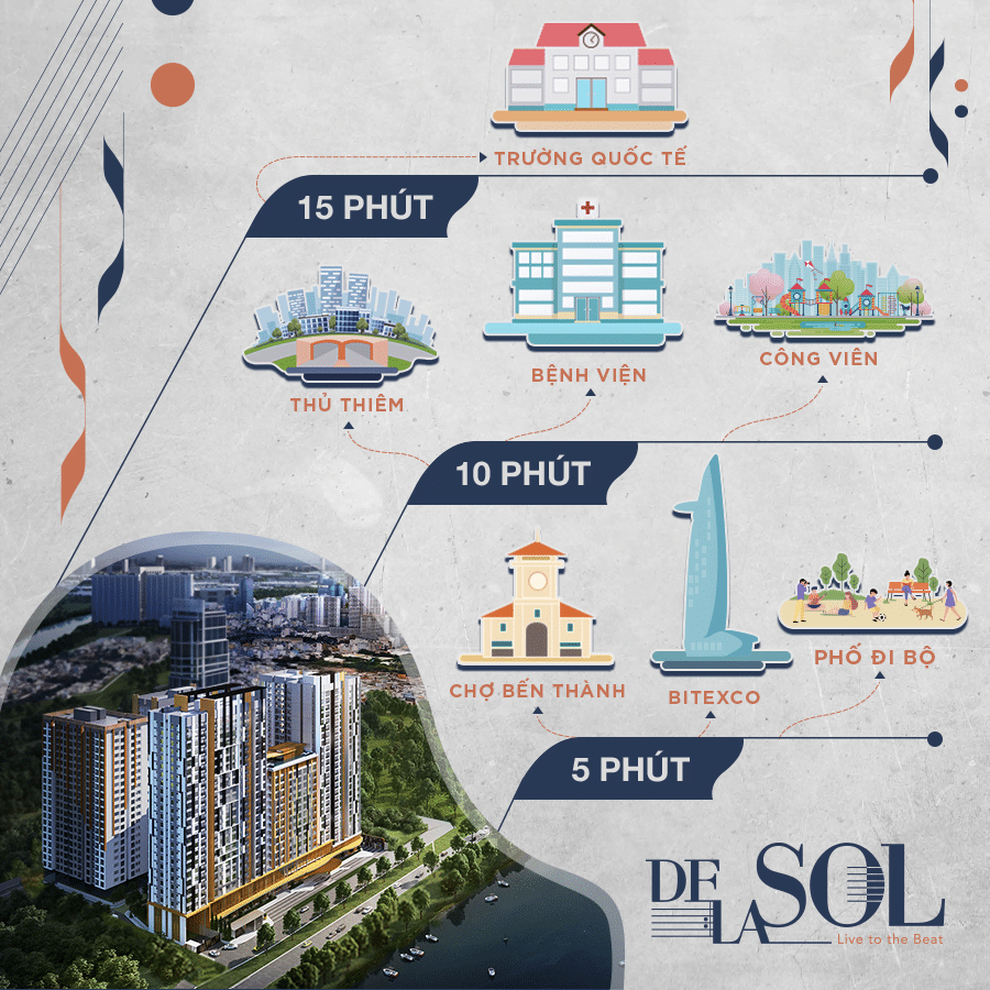 • 10 phút đến KĐT Thủ Thiêm Thành phố Thủ Đức – trung tâm tài chính, thương mại, dịch vụ mới.