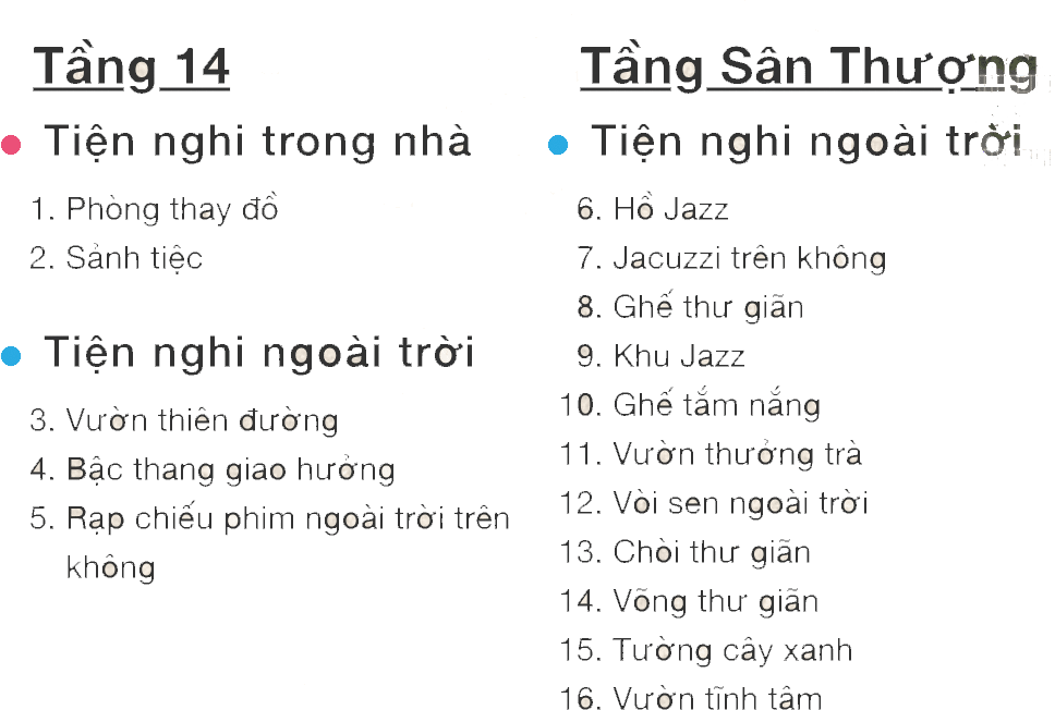 TIỆN ÍCH TẦNG 14 VÀ SÂN THƯỢNG