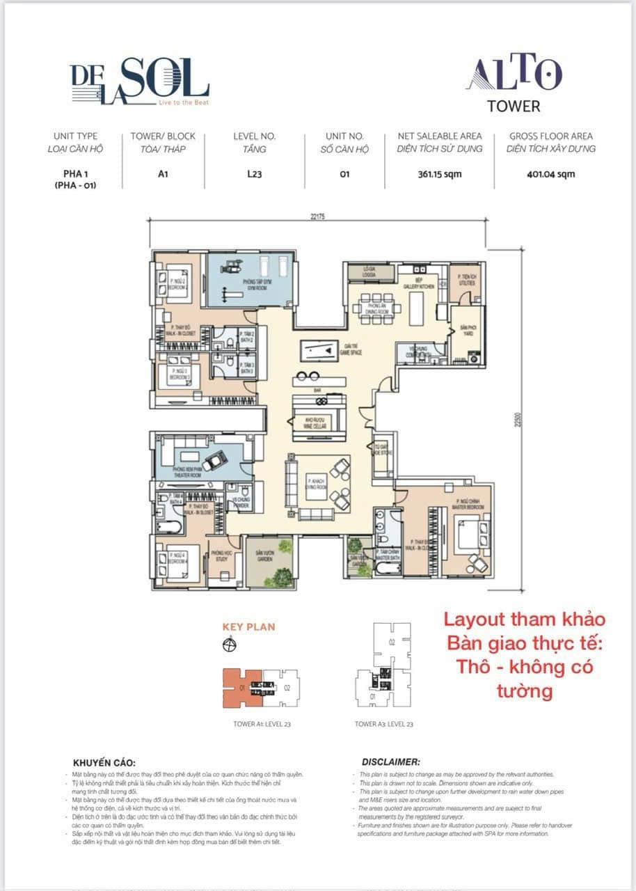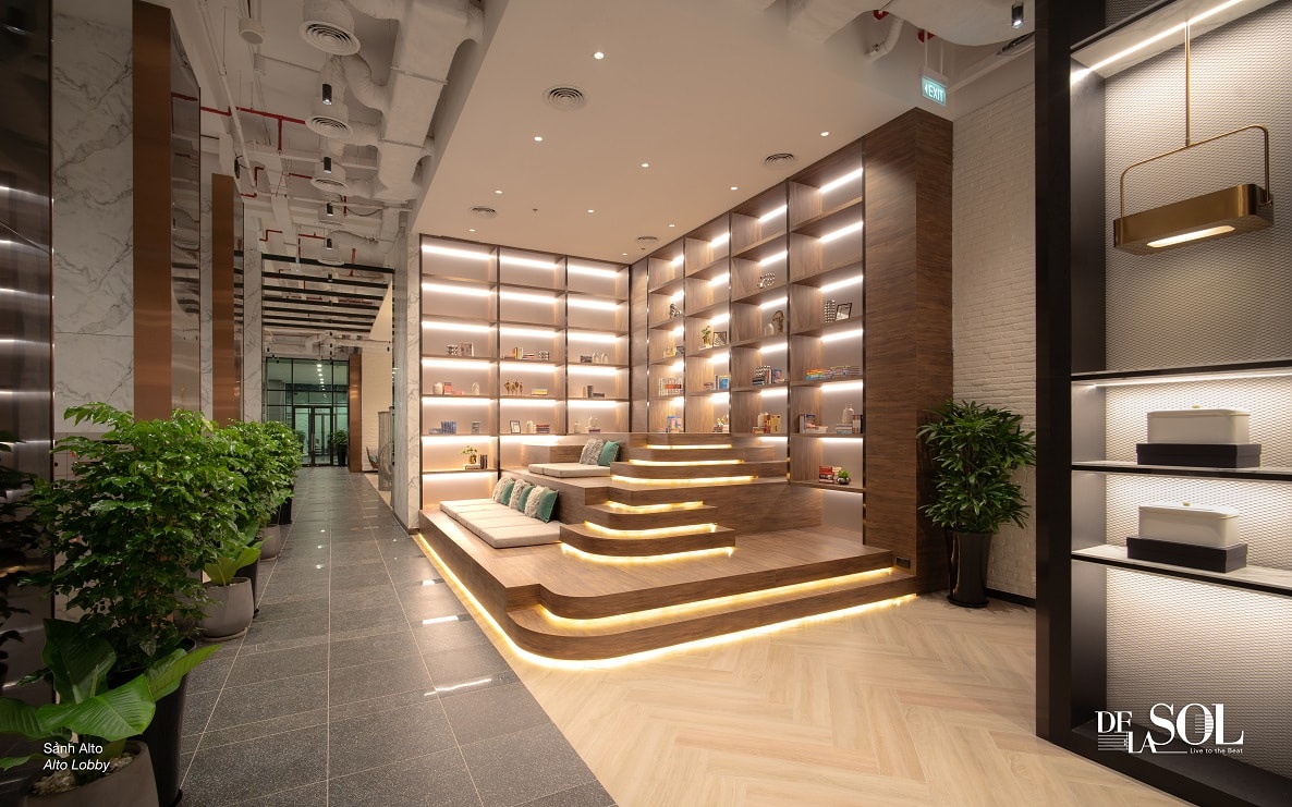Căn hộ Penthouse De La Sol được thiết kế dành riêng cho những cư dân yêu thích không gian sống sang trọng, hiện đại và gần gũi với thiên nhiên. Một trong những điểm nhấn nổi bật của Căn Hộ Penthouse Sài Gòn này là diện tích rộng lớn, ví dụ như căn penthouse có diện tích từ 355 đến 507m2, đi kèm với khu vườn riêng biệt, mang đến không gian sống thoáng đãng và đẳng cấp. Thiết kế độc đáo, kết hợp giữa các tiện ích cao cấp và không gian xanh rộng rãi, tạo nên một môi trường sống vừa tiện nghi vừa thư giãn.