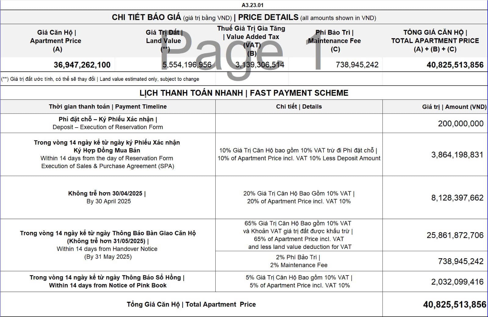 – Giá bao gồm VAT, 2% KPBT: 40ty8