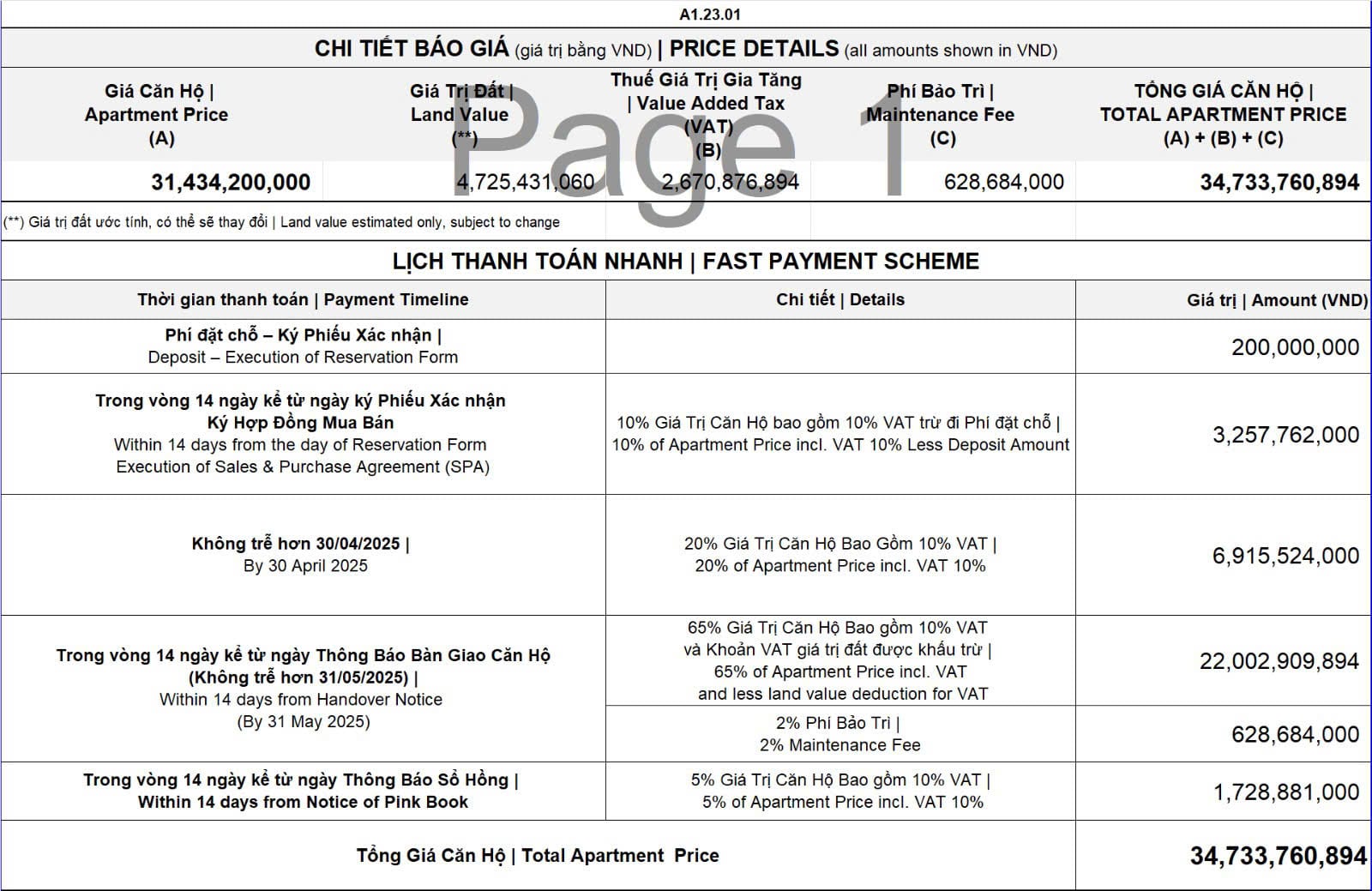 – Giá bao gồm VAT, 2% KPBT: 34ty7