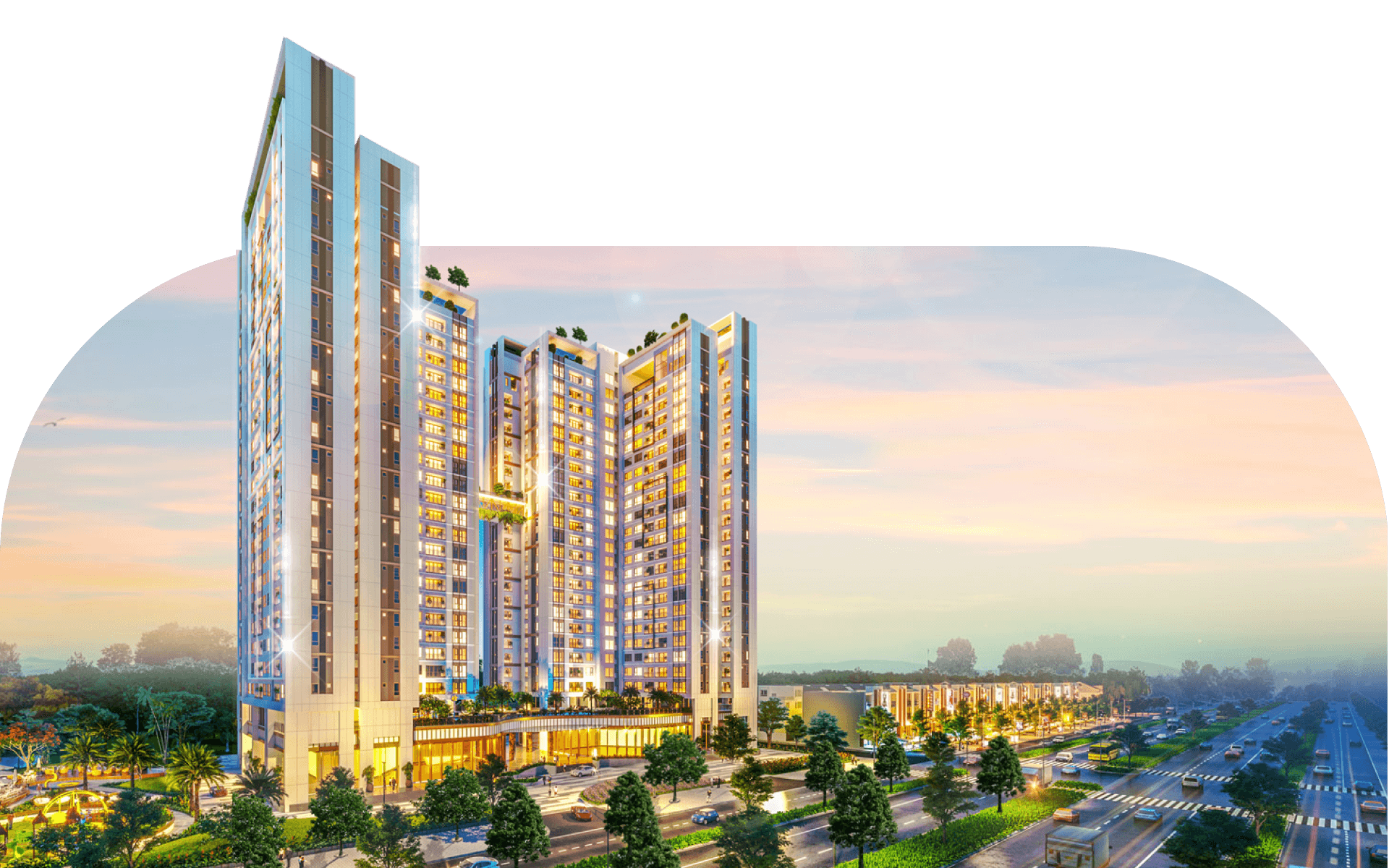 Quy mô 2 tòa tháp, 25 tầng (01 Tầng hầm, 02 tầng thương mại)