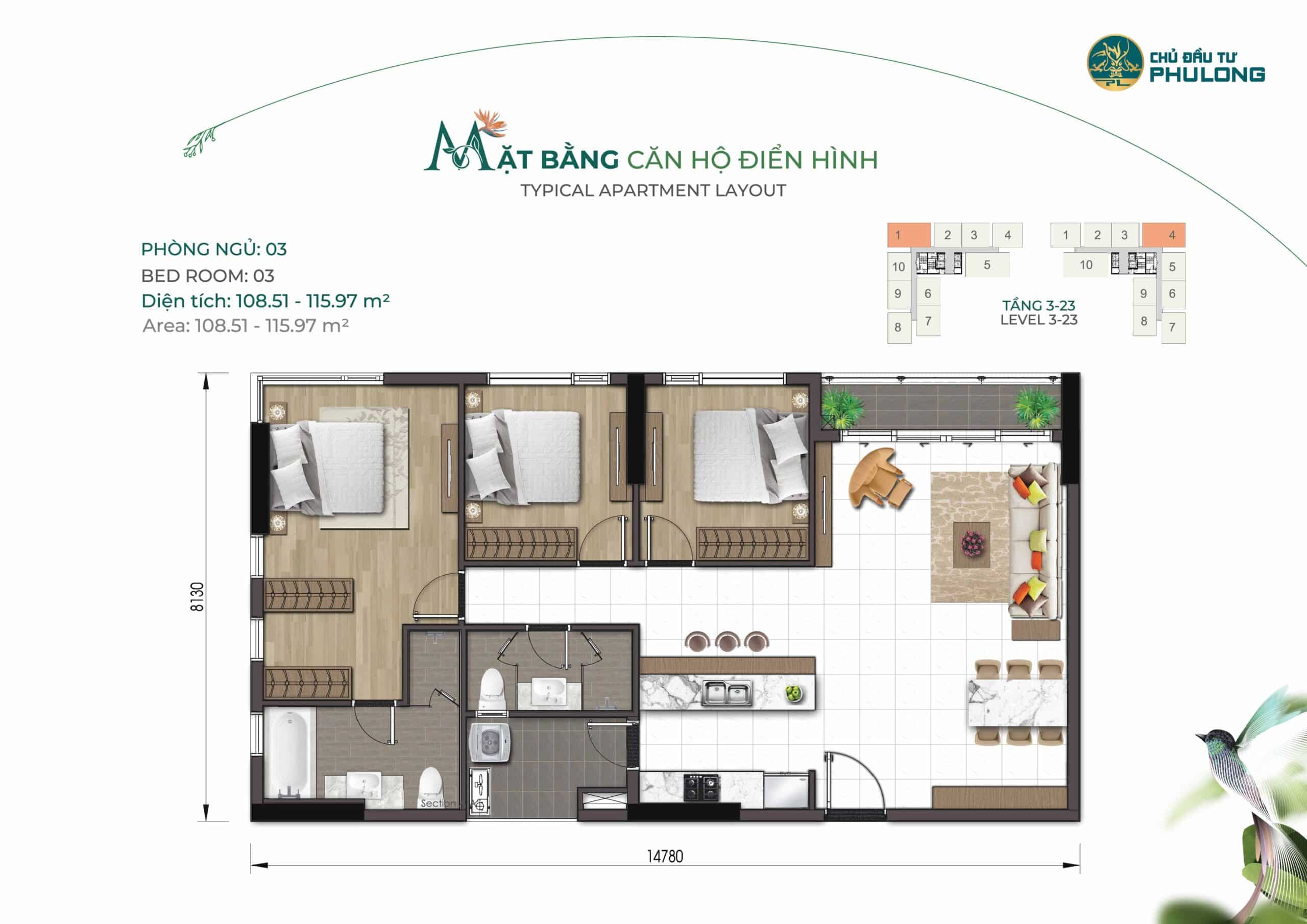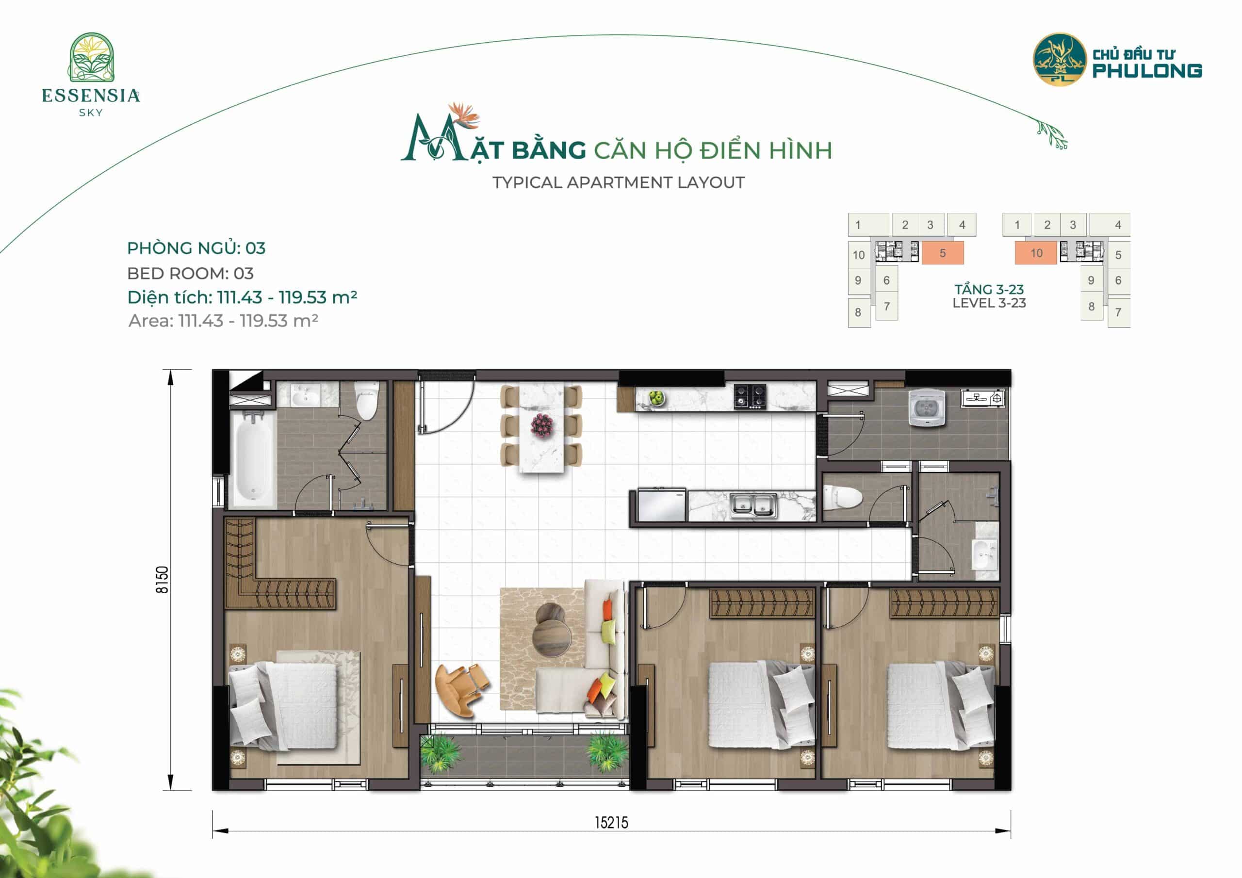 • Căn 3PN (115m2 – 119m2) 84 Căn