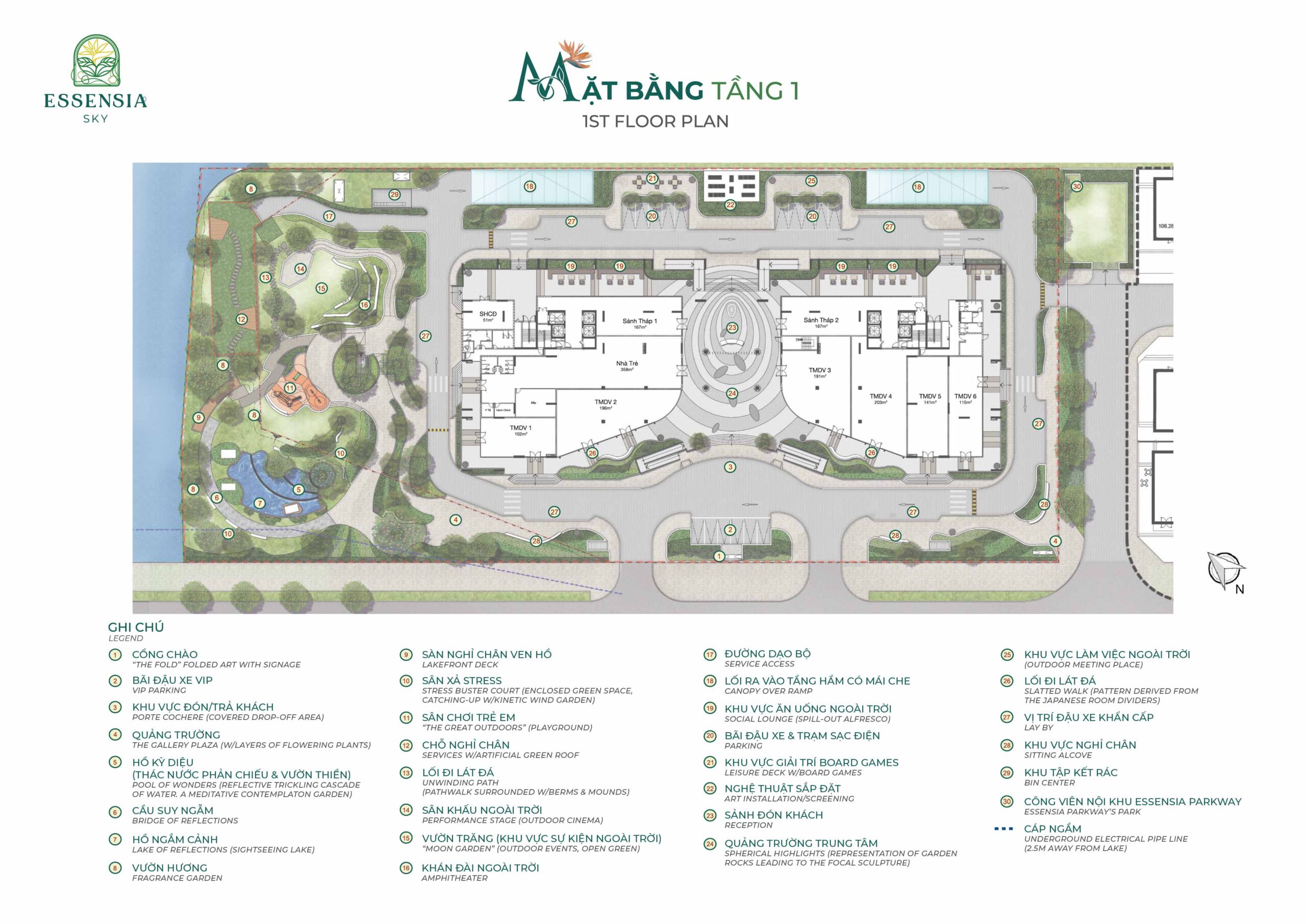 Tiện ích nổi bật Hồ bơi vô cực, vườn thiền, khu vui chơi, TTTM…