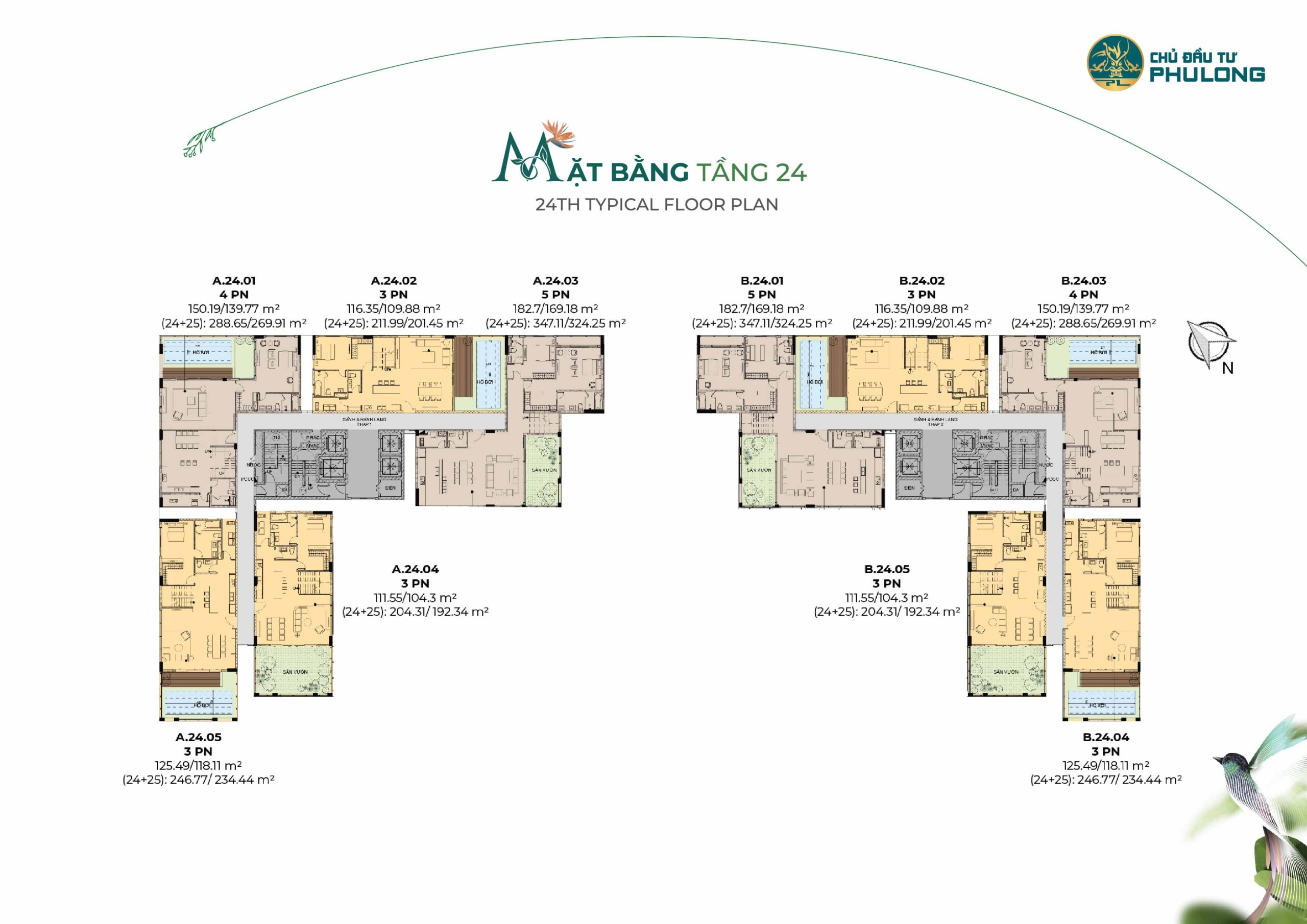 • Penthouse duplex sân vườn: 3,4,5 phòng ngủ