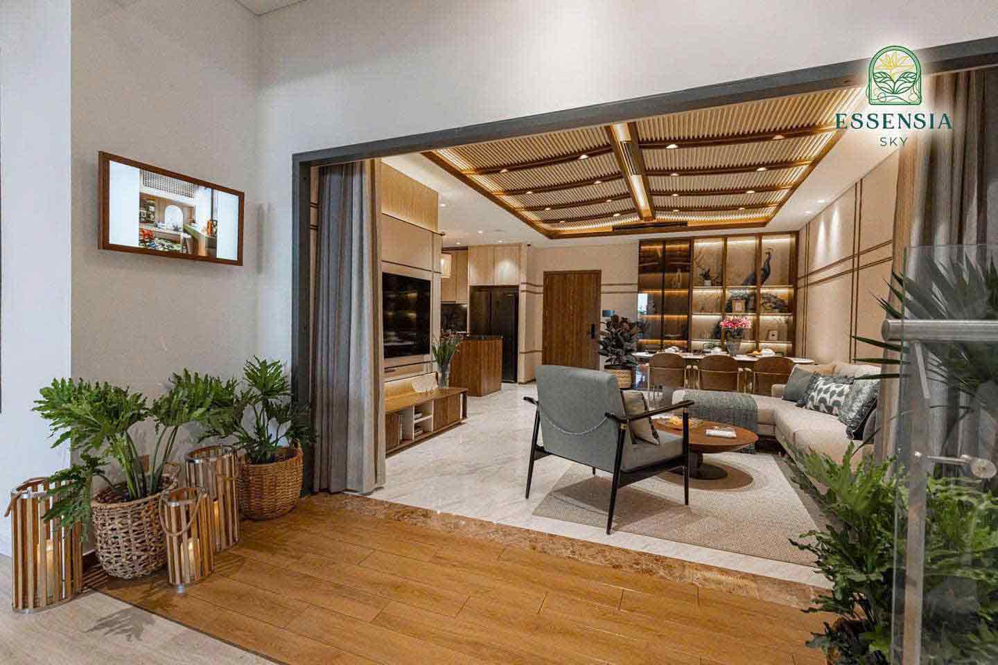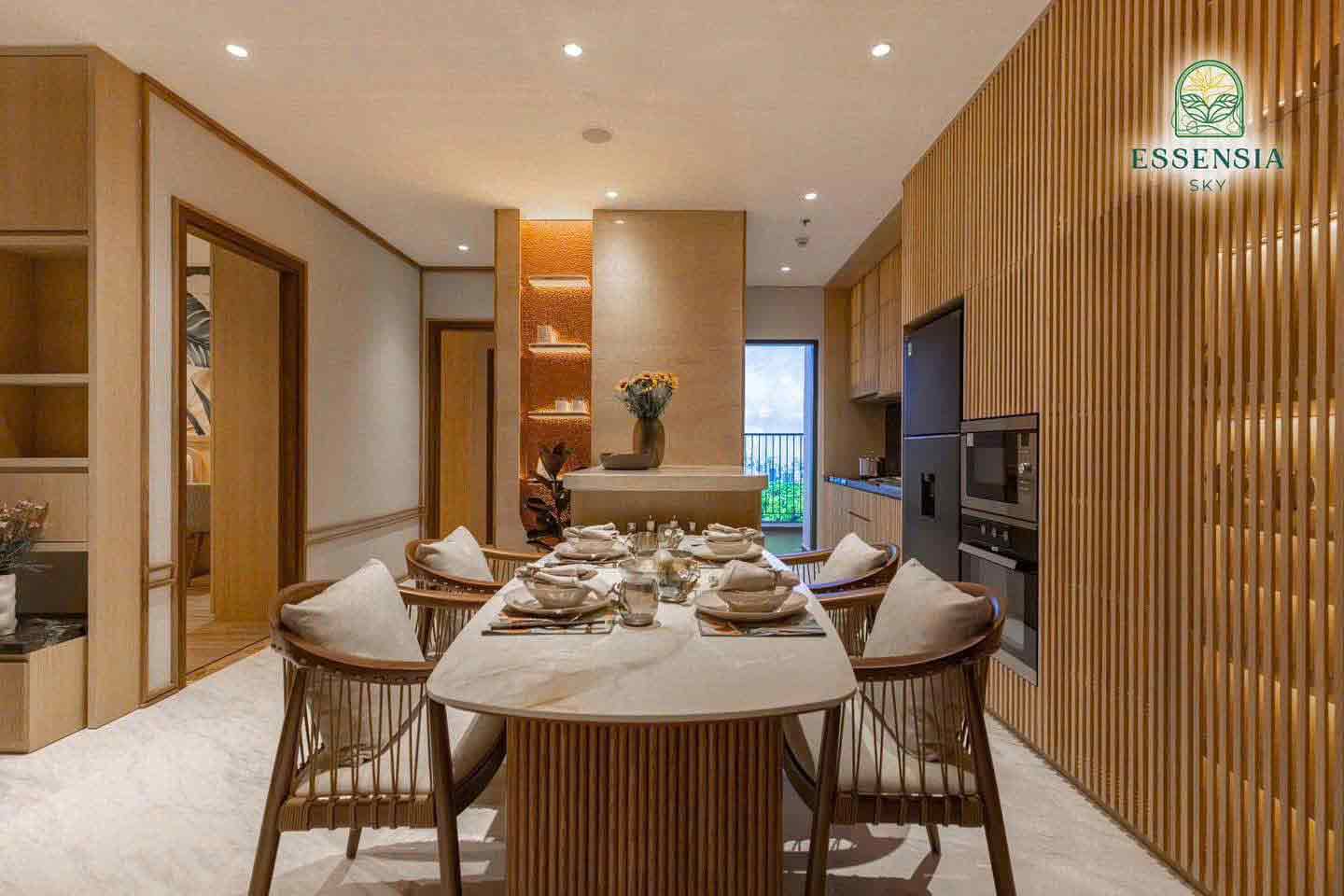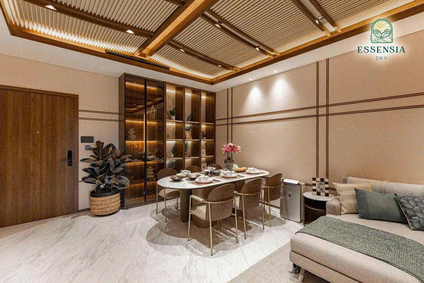Theo triết lý sống Lagom (Thuỵ Điển), hạnh phúc là sống vừa đủ. Essensia Sky được tính toán thiết kế 1 cách kĩ càng để không gian sống luôn vừa vặn. Chỉ có 6-10 căn/tầng, hành lang chung rộng 1,8m, các căn hộ của Essensia Sky được thiết kế riêng biệt, sang trọng, thông minh, không góc chết có từ 2-4 mặt thông thoáng, đưa ánh sáng, hướng gió vào góc sống như một villas trên không. Mỗi căn hộ được hoàn thiện cơ bản với trần cao tối thiểu 2,9m, logia riêng, hệ cửa kính với chiều cao sát trần, mang đến sự sang trọng đẳng cấp giúp gia chủ tối đa góc nhìn ôm trọn cảnh quan vùng dự trữ sinh thái Nam Sài Gòn.