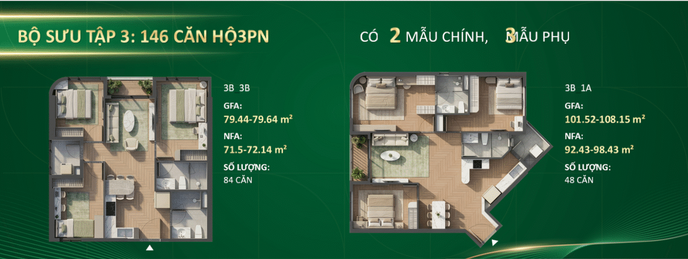 • Diện tích GFA: 79.44 – 108.15 m²