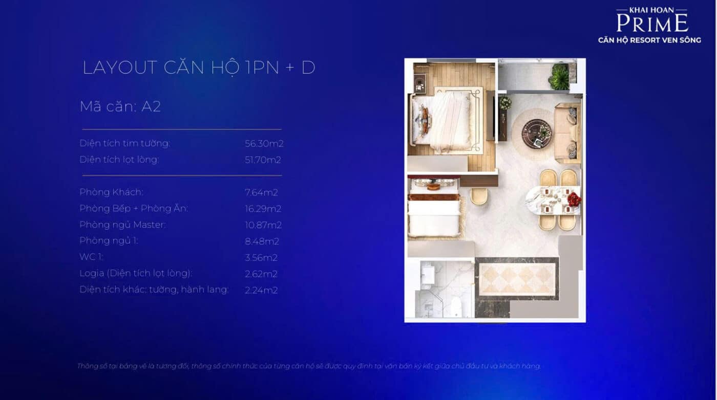 1PN / 1PN+1: diện tích từ ~45 m² đến ~56 m².