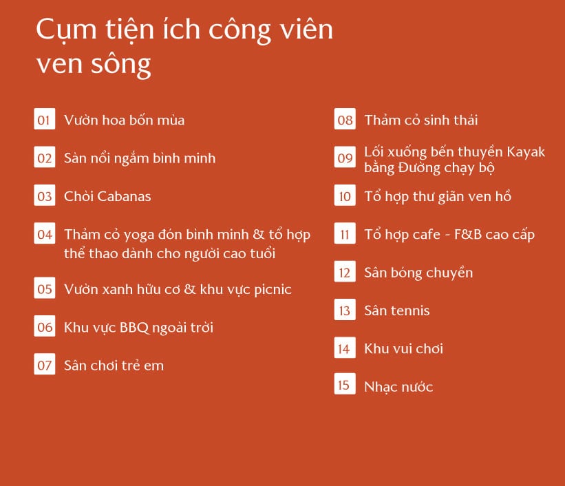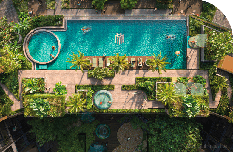 • Không gian xanh: Vườn hoa bốn mùa, thảm cỏ sinh thái, hồ bơi vô cực, khu BBQ ngoài trời.
