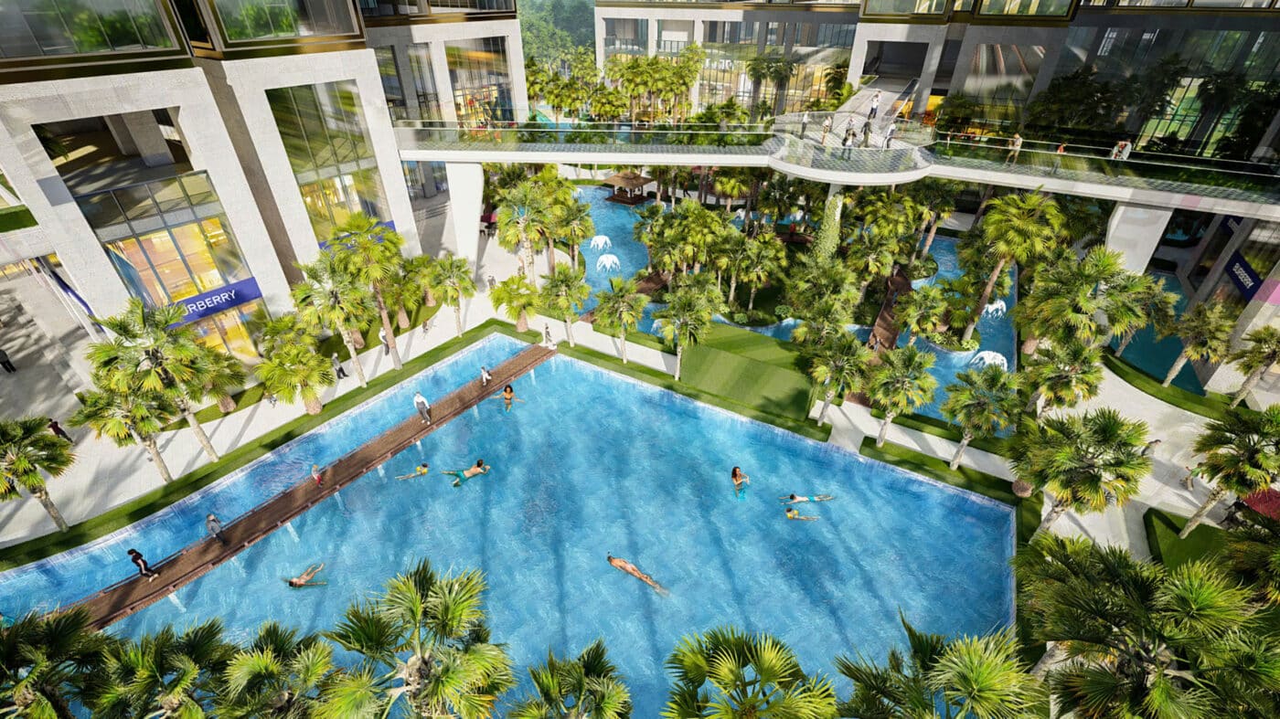 View nội khu hồ bơi & công viên, gần trung tâm thương mại.
