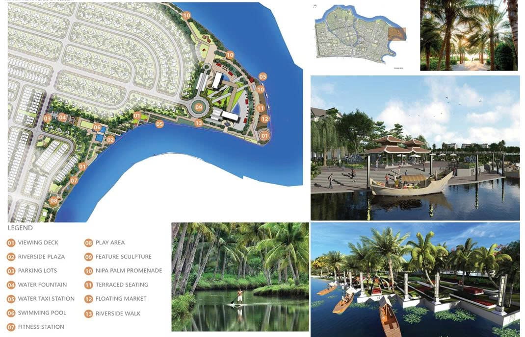 Quy hoạch ven sông với không gian cảnh quan resort, kênh rạch & quảng trường lớn.