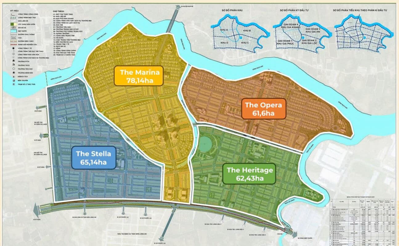 - The Marina – phong thuỷ ven sông, bến du thuyền, biệt thự nghỉ dưỡng.