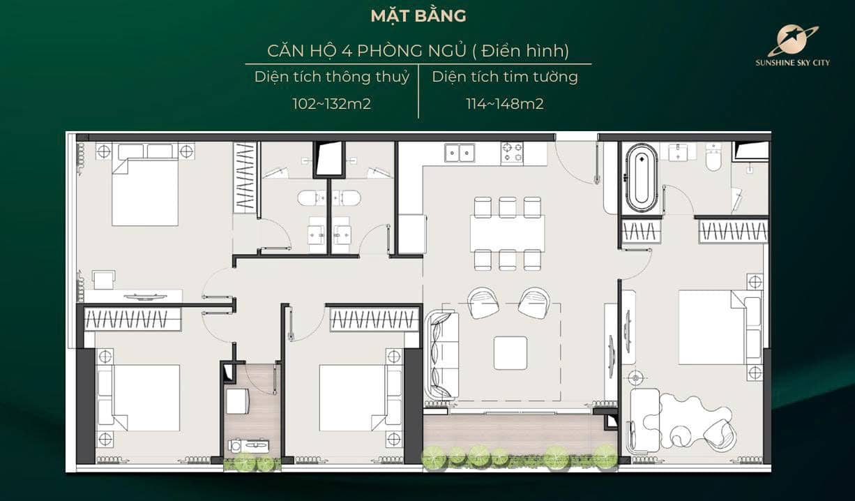Sản phẩm phân khu: căn hộ cao cấp chuẩn “khách sạn 4.0”, ứng dụng công nghệ Smart Home & Smart Living, mặt ngoài kính Low-E, thiết kế hiện đại tối ưu ánh sáng & view.