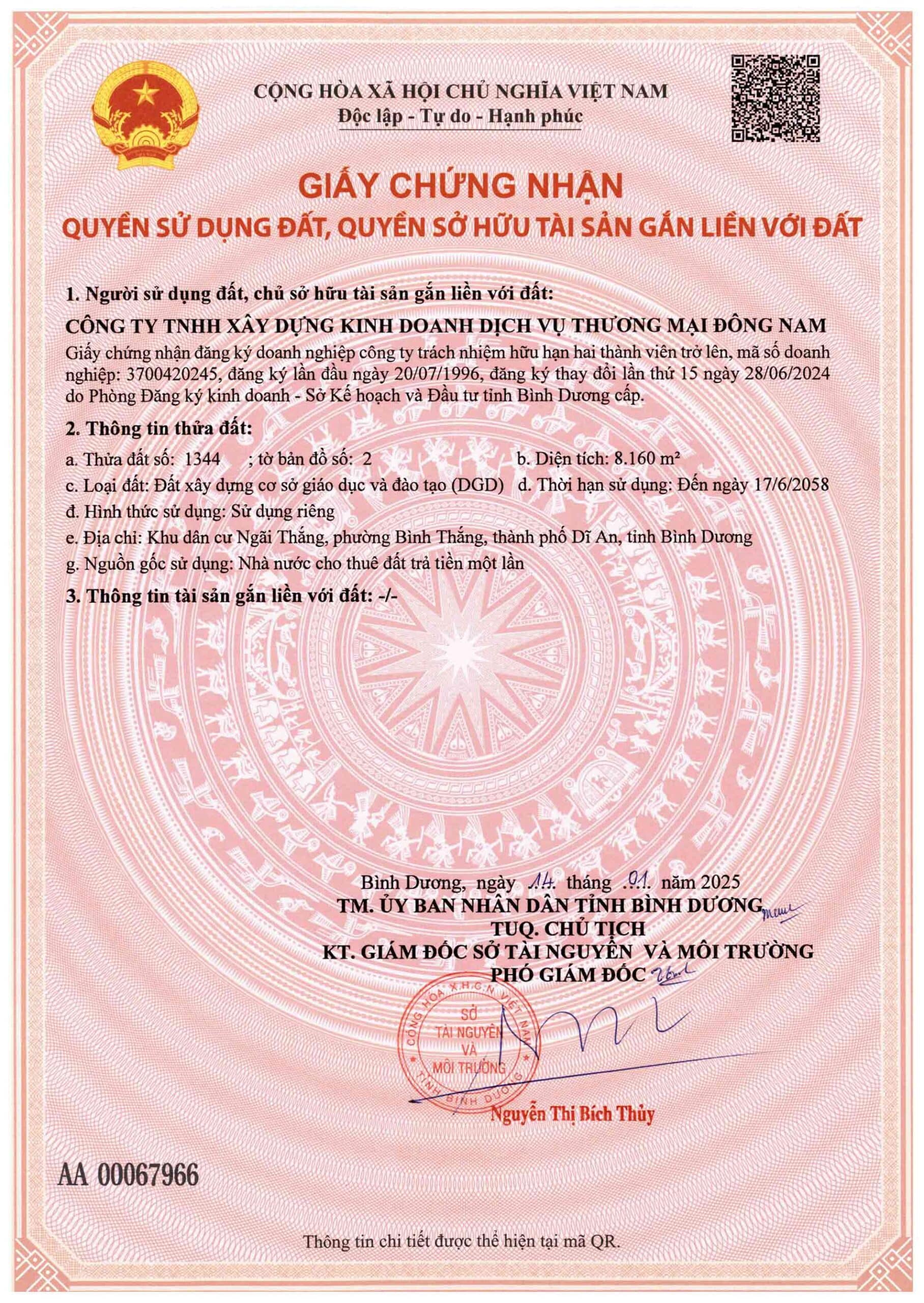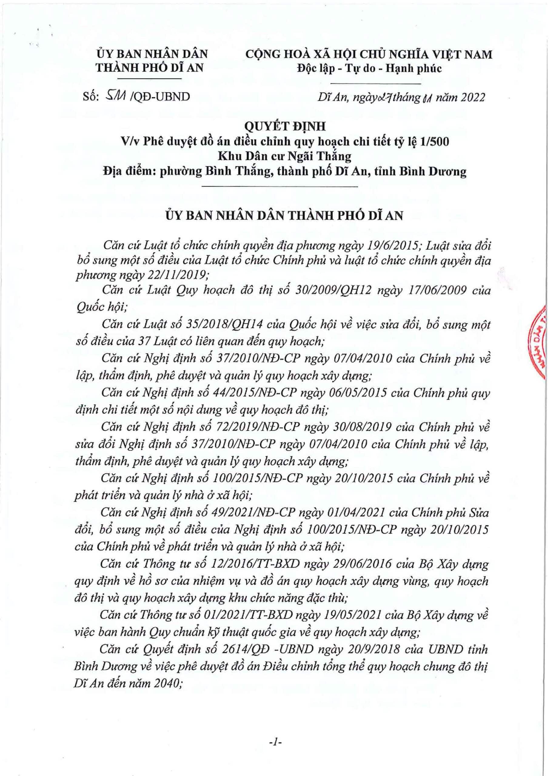 - Quy hoạch chi tiết 1/500: Dự án được phê duyệt quy hoạch chi tiết tỷ lệ 1/500 theo Quyết định số 511/QĐ-UBND do UBND tỉnh Bình Dương ban hành ngày 27/01/2022. Đây là cơ sở pháp lý để triển khai dự án trên khu đất 2,9 ha tại phường Bình Thắng, TP. Dĩ An, Bình Dương.