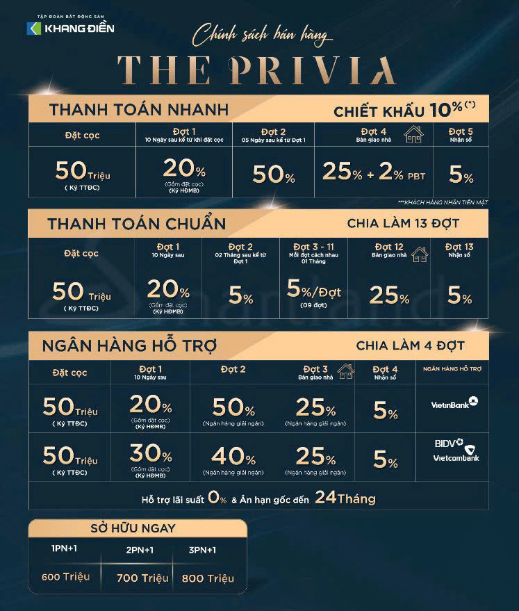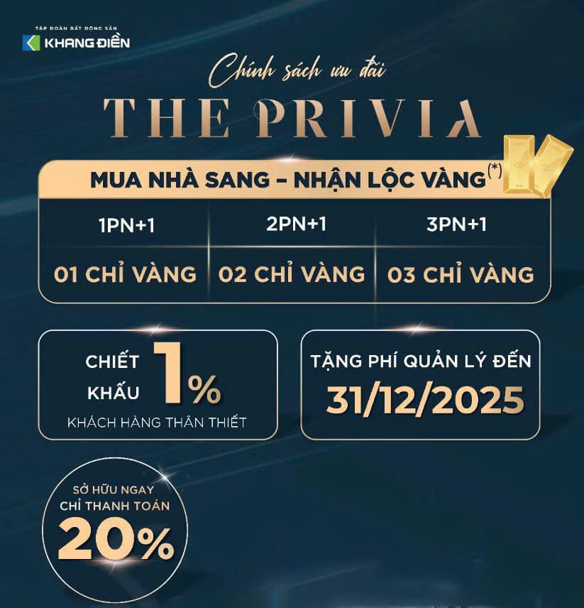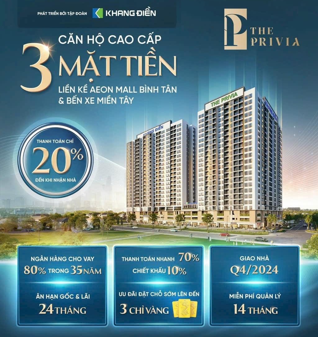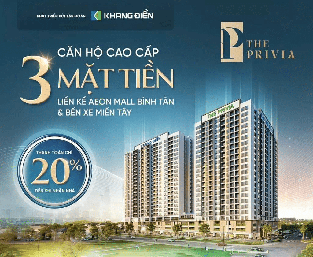 Căn hộ The Privia ”viên ngọc xanh” giữa lòng thành phố phát triển bởi chủ đầu tư uy tín trên thị trường bất động sản Khang Điền, dự án được xây dựng với quy mô 1,83 ha, cung ứng 1.043 sản phẩm loại căn 1 – 3 phòng ngủ. Nằm tại vị trí vàng số 158 An Dương Vương, phường An Lạc, Quận Bình Tân, khu đất đắc địa nhất quận Bình Tân, khu căn hộ The Privia Bình Tân được ví như cơn mưa giải nhiệt nguồn cung nhà ở cao tầng trên thị trường, thu hút sự chú ý từ phía khách hàng có nhu cầu ở và các nhà đầu tư.